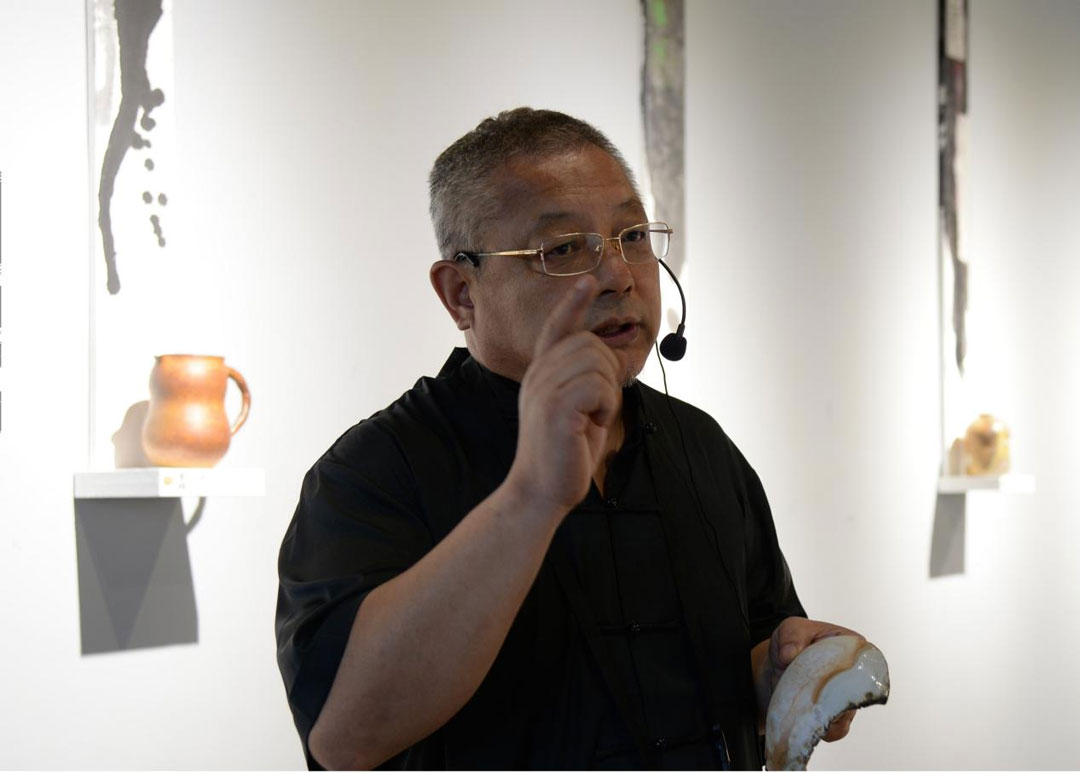 开幕式后,李军与受邀专家学者举行了柴烧作品专题研讨会,并于当日下午以“结合陶瓷谈文化自信”为题在“文联大讲堂”授课。