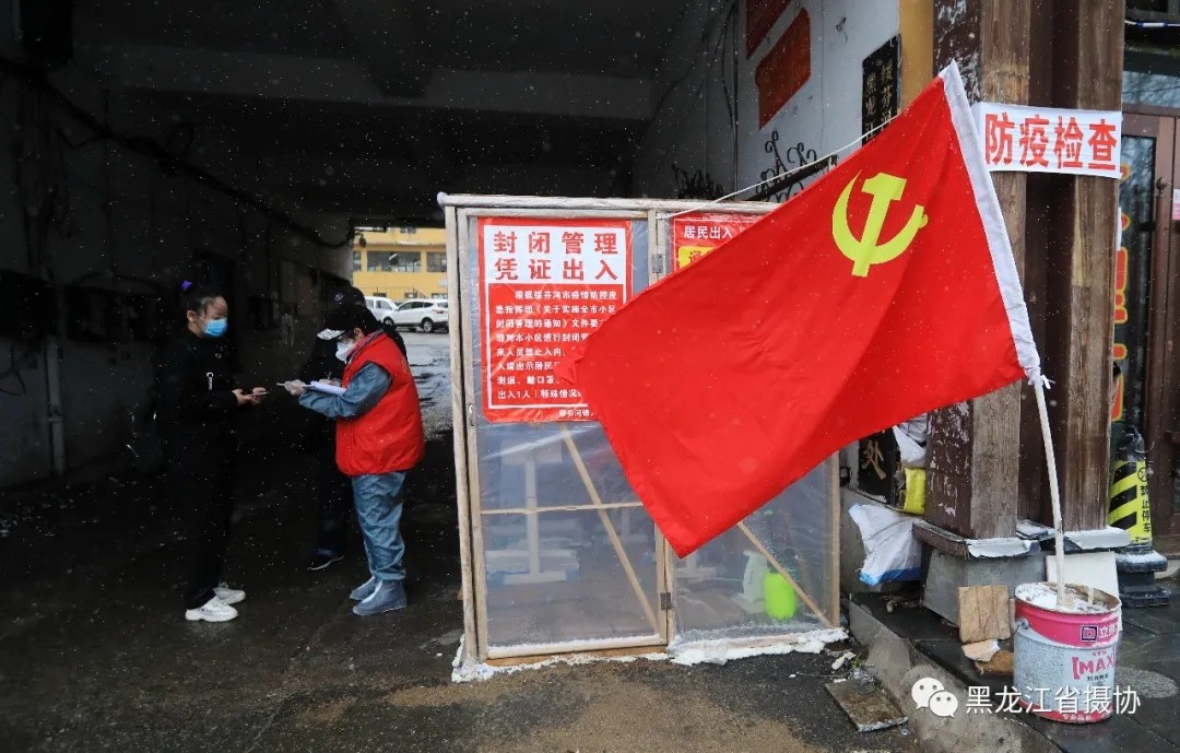 为了严防疫情,把好国门,绥芬河市充分发挥党员先锋模范作用,在全市设立了80个党员先锋岗,成立了10余支党员冲锋队,建立20多个临时党支部,以党员先锋模范作用,带动群众主动参与防控。绥芬河市机关企事业单位的3500名干部职工与社会志愿者一道投身于疫情防控阻击战中,在全市336个卡口,严防严控。在三合林小区三、四号门卡点,鲜艳的党旗迎风飘扬,几位党员认真值守,查验进入者身份证、工作证、通行证,登记个人信息,监督其扫码,为其测温。