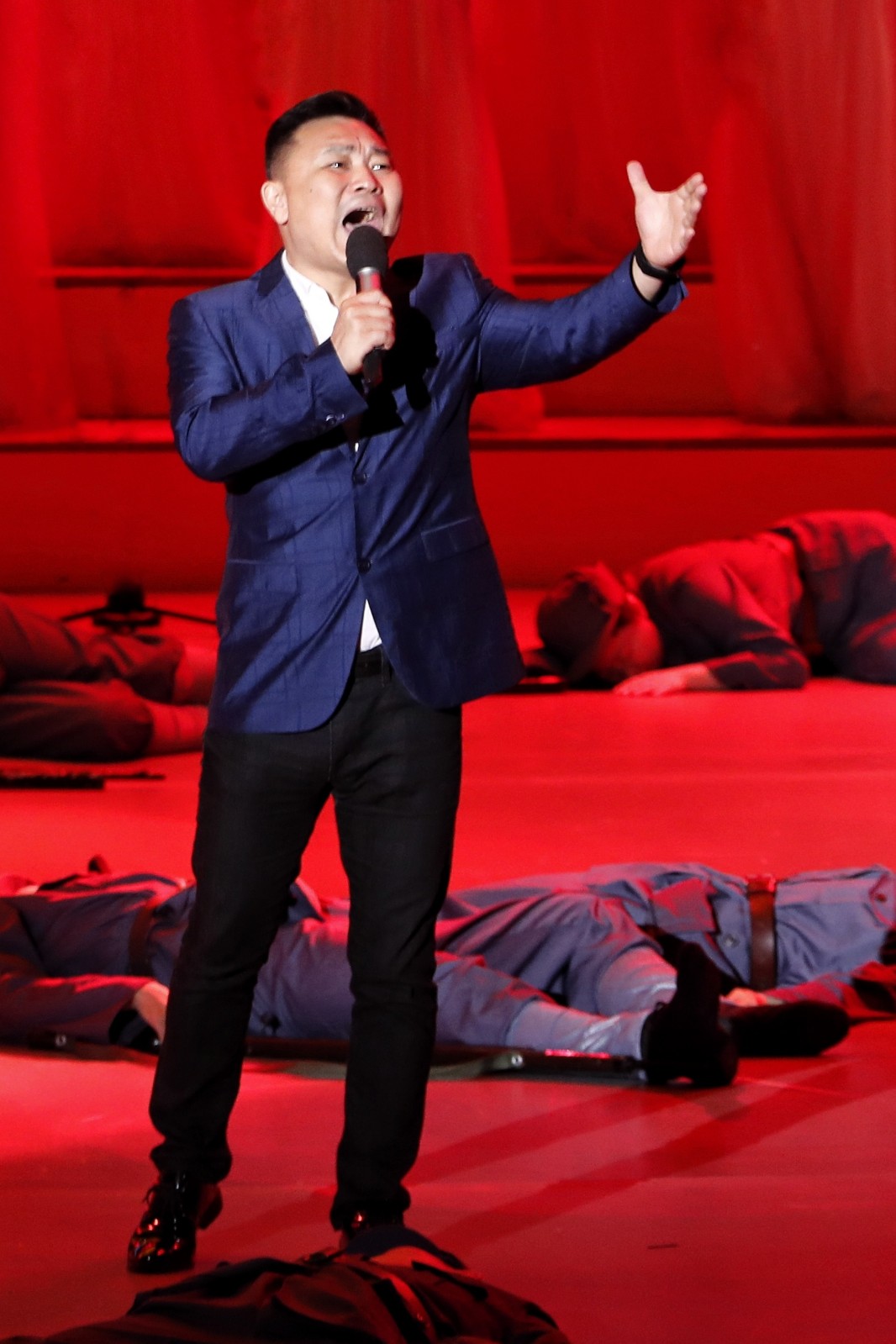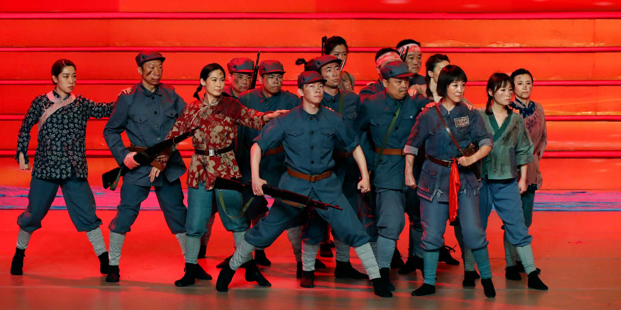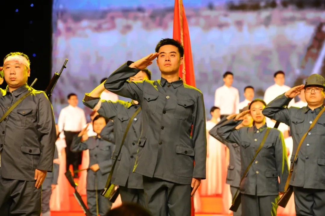 文联的同志们,以主人翁的精神为了一个目标共同努力着。机关党委专职副书记陈静负责组织沟通协调和后勤保障,工作起来面面俱到有条不紊,对演职员呵护有加。省音乐家协会秘书长陆园媛、省摄影家协会秘书长丛惠博积极协调相关协会主席团成员,为艺术家们更好地融入节目中做好服务。男同志们主动承担起管理道具的责任,枪,大家抢着扛,旗,大家轮着举。组联处负责人郝志福,在群演中站在第一排,每一次冲锋他都需要跑得最远、摔得最狠。可演出一结束,他就笑眯眯地开始张罗,枪坏没坏?旗破没破?腰带丢没丢?帽子少不少?下午正式演出了,中午他不休息就呆在排练厅看管道具,招呼大小伙子们,趴在地上补那块作为海水的超大蓝绸子;办公室四级主任科员刘士伟最辛苦,文联缺少经费,为了省钱,道具都是找人借。他一次次跑院团借枪借衣服,有时为了保证不耽误人家用,用完就得还,还完再去借,他一趟趟往返,从没有一句怨言......这些可爱的同志们,都在自发地为文联贡献着自己的力量,没有人要求他们,没有人给他们安排任务,他们都在凭着文联人的责任感和使命感,扭成一股绳为文联的荣誉而战,为党的百年华诞献礼!