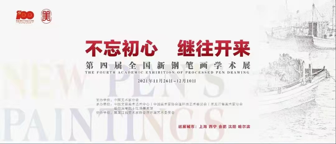 2021年11月26日,“不忘初心 继往开来——第四届全国新钢笔画学术展”(哈尔滨站)巡展在哈尔滨红场美术馆展出,展期至2021年12月10日止。展览由中国美术家协会主办,中国文联美术艺术中心、中国美术家协会连环画艺术委员会、黑龙江省美术家协会、哈尔滨学院、哈尔滨红场美术馆共同承办,黑龙江省美术家协会连环画艺术委员会协办。