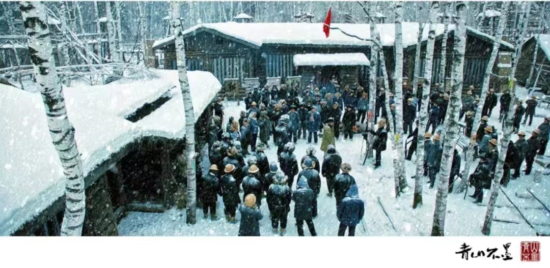 《青山不墨》的时代质感源于创作者对历史真实的敬畏。剧本以马永顺、张子良等林业英雄的动人事迹为原型进行艺术概括,历时三年潜心打磨,全实景拍摄真实再现林区改革发展的奋斗历程。演员对角色平实、朴素的生活化演绎唤起观众强烈的共情感,每一处历史场景的逼真还原与细节的精雕细琢都弥合了时代的罅隙。上霜的睫毛、厚重的皮袄、千斤的树干、陡峭的雪坡……浑厚的历史底色与饱满的细节勾勒使得这段历史镜像中映射的家国记忆越发生动、鲜活,记忆中镌刻着三代林业人与新中国共成长的辉煌历程,洋溢着最美奋斗者薪火相传的家国情怀。