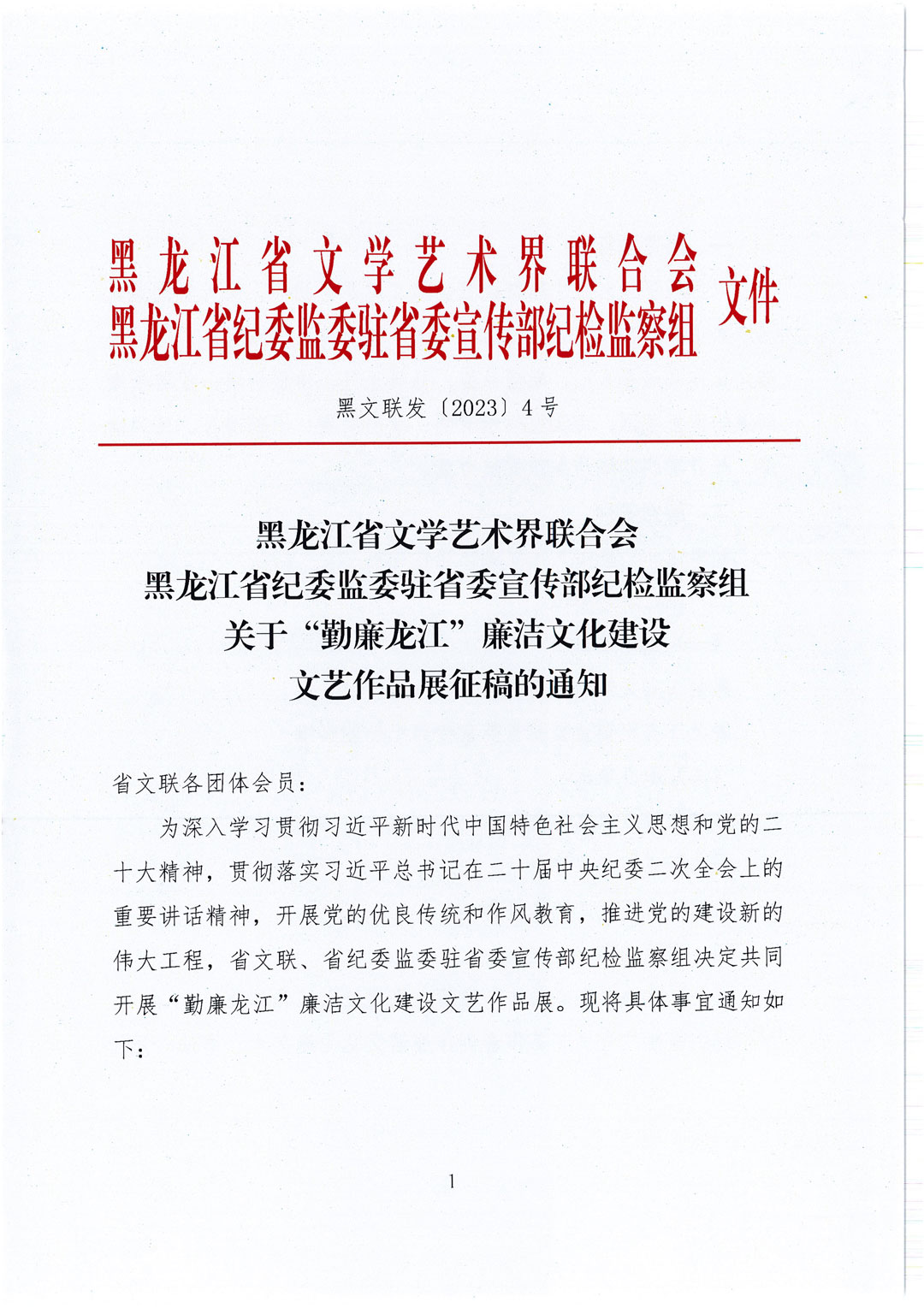 征稿通知 | “勤廉龙江”廉洁文化建设文艺作品展