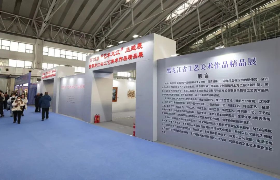 12月1日至3日, 2023黑龙江国际文化产业暨创意设计博览会在哈尔滨国际会展中心C厅盛大举行。本届“龙江文创会”共设五大展区,共有九大类近万件展品、100多位艺术家参展。由黑龙江省文联主办的第四届“艺术龙江”主题展暨黑龙江省工艺美术作品精品展精彩亮相,备受关注,观展的游客络绎不绝。
