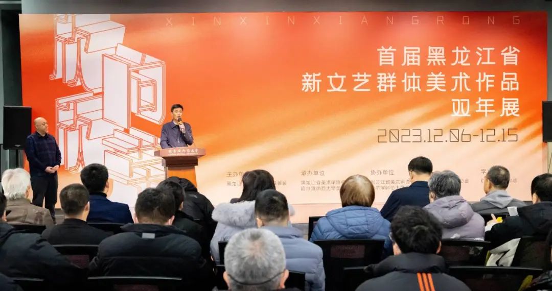12月11日上午,由黑龙江省文学艺术界联合会主办,黑龙江省美术家协会、哈尔滨师范大学美术学院承办,黑龙江省美术家协会新美术家群体艺委会、哈尔滨师范大学美术馆协办的“欣欣向荣——首届黑龙江省新文艺群体美术作品双年展”在哈尔滨师范大学美术馆开幕。开幕式由省美协驻会副主席兼秘书长石正军主持,哈师大党委常委、副校长徐国峰致欢迎词,省美协新美术家群体艺委会主任高少珂汇报展览情况,哈师大在读硕士研究生李满新代表获奖作者发言,省文联一级巡视员张正明宣布展览开幕。