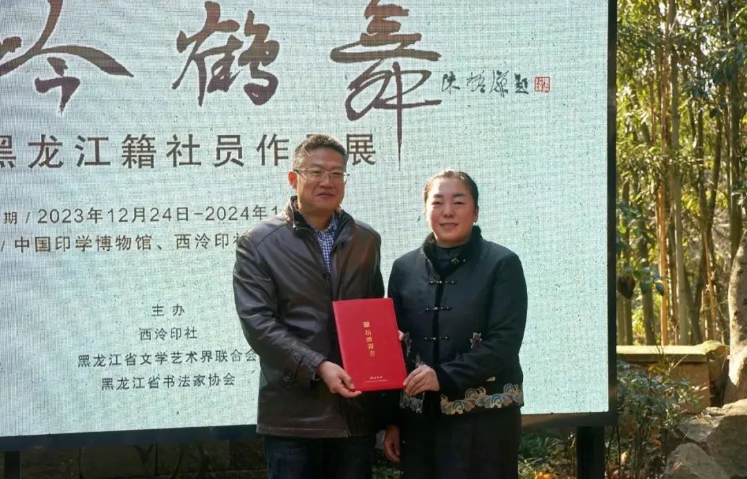 黑龙江省与西泠印社,虽处祖国大地的南北两端,但有着深远渊源和深厚情谊。百廿年来,先后有21位黑龙江籍金石书画家加入西泠印社,他们坚持守正创新,不断在各自的领域深耕发展,为传播普及印学文化发挥了积极作用。尤其是近年来,在当地社员的牵线搭桥下,西泠印社与黑龙江省相关文化艺术部门和团体的合作交流日益深化。黑龙江省书协多次作为合作单位,组织了西泠印社在东北赛区的多场文化艺术活动,成为印社与龙江深情厚谊的最佳见证。