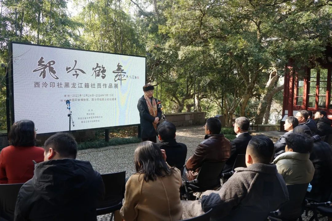 应西泠印社邀请,继“龙吟鹤舞”黑龙江籍西泠印社社员作品展今年9月在黑龙江省美术馆举办后,12月25日,作品展开幕式暨捐赠仪式在杭州孤山遁庵举行。展览由西泠印社、黑龙江省文学艺术界联合会、黑龙江省书法家协会联合主办,共展出18位黑龙江籍已故和当代西泠印社社员的80件书、画、印精品。这也是全体黑龙江籍西泠印社社员作品在孤山的首次集体展示。