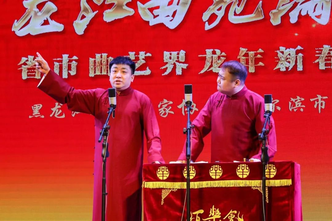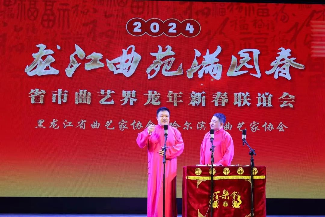 2月23日,“龙江曲苑满园春”省市曲艺界龙年新春联谊会在哈尔滨百乐会相声剧场举行。黑龙江省文联党组书记马新、哈尔滨市文联党组书记孙建伟等有关单位领导,省市(地)曲协负责同志、专委会代表、会员代表,老曲艺工作者代表,“强基工程”进驻单位代表共计120余人济济一堂,共叙情谊,共庆龙年新春佳节,共话龙江曲艺事业发展。