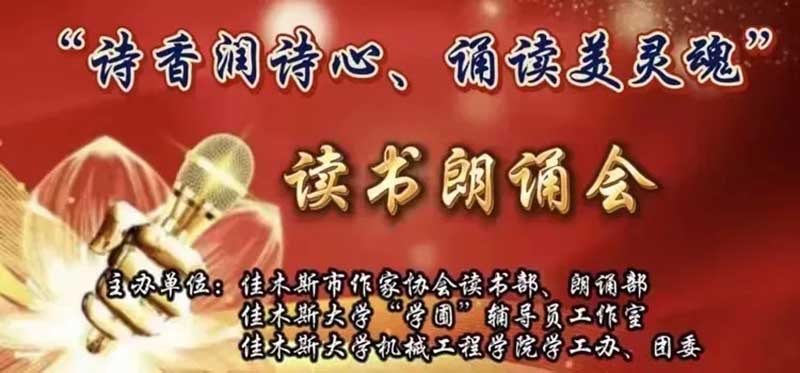4月20日,在第29届“世界读书日”到来之际,由佳木斯市作家协会读书部和朗诵部、佳木斯大学“学圃”辅导员工作室、佳木斯大学机械工程学院联合主办的“诗香润诗心 诵读美灵魂”读书朗诵会在佳木斯大学行知楼举办。