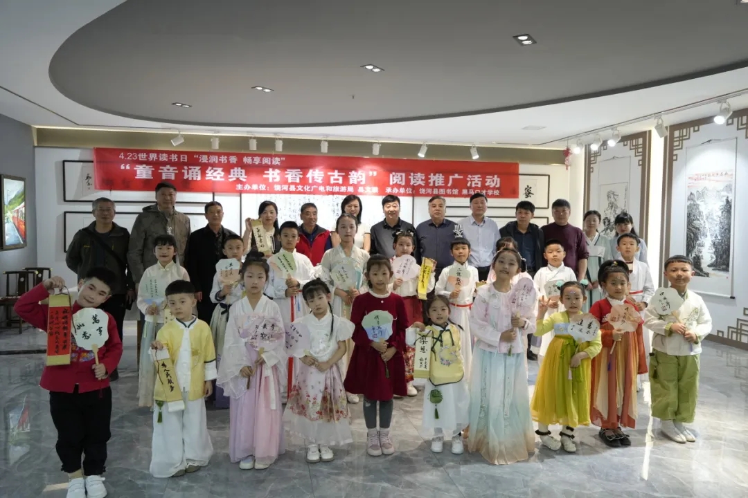 最美人间四月天,恰是读书好时节。4月20日,由饶河县文联主办,县文化广电和旅游局、县图书馆、县黑马口才学校承办的“童音诵经典 书香传古韵”阅读推广活动在饶河县新时代文明实践中心举行,40多位儿童与家长参加活动。