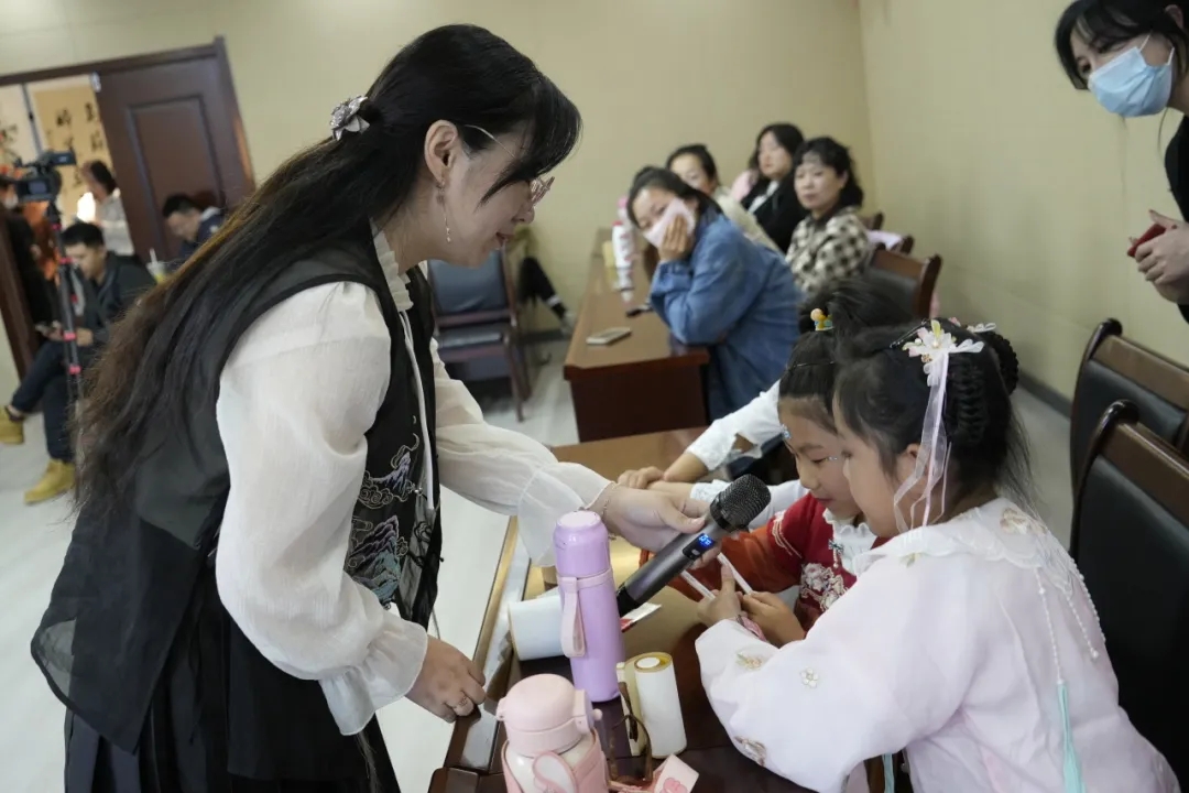 在活动现场的诵读环节,孩子们字正腔圆地吟诵《满江红》《水调歌头》《滕王阁序》等古诗词,诠释着他们对经典的理解和传统文化的热爱。精彩的诵读激发了艺术家们的创作灵感,挥毫泼墨为孩子们现场创作作品。活动第二个环节,县文联和图书馆从古代的礼仪、娱乐汲取灵感,为孩子们设计了互动小游戏。“学国礼”让孩子们言行有度、举止有仪;“投壶”让孩子们练心志、重合作;“藏钩”让孩子们知典故、勤观察。最后的“穿越时空的来信”环节,县书法家协会的老师为每一位参加活动的小朋友写了一封回信,精心创作了硬笔书法作品,鼓励孩子们要好好学习,多读好书。