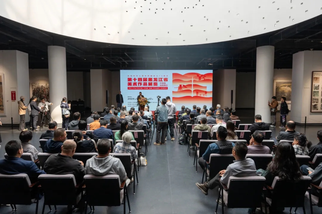 黑龙江省文联党组书记、第十四届黑龙江省美术作品展览组委会主任马新宣布展览开幕,省文联党组成员、副主席王广致辞,黑龙江省美术家协会主席赵云龙宣读获奖作者名单,中国画艺委会主任王明、油画艺委会主任刘宏达分别介绍中国画、油画展区概况,获奖作者代表刘森、董琦发言。开幕式由黑龙江省美术家协会驻会副主席兼秘书长石正军主持。黑龙江省美术家协会主席团成员、艺委会成员、艺术家共计200余人参加开幕式。