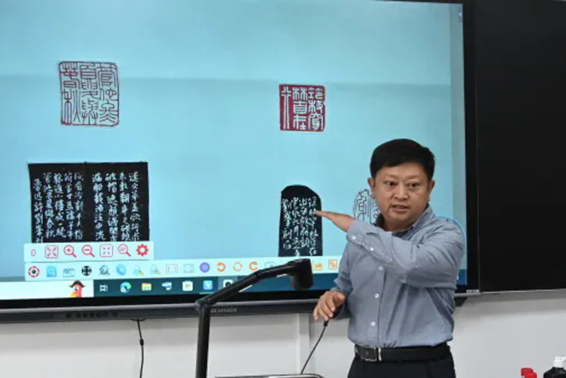 导师蔡毅主要以黑龙江省第十六届篆刻作品展入展作品为例,从刀法、字法和章法等角度进行了精彩的讲评。他在指导学员创作的同时,更鼓励大家要根植传统、取法乎上,坚持多临、多看、多读、多思,以学识涵养艺术,坚持篆刻学习,从经典印章中汲取营养,并注重书法基本功训练在篆刻创作中的重要作用,进一步创新篆刻形式、丰富篆刻艺术的表现内容和审美意蕴。