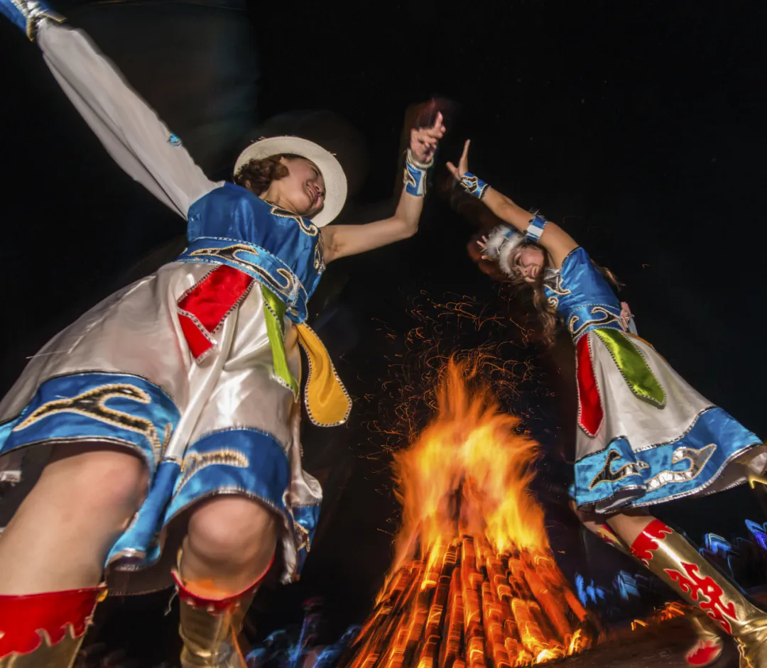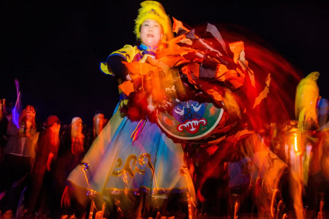 夜幕降临,熊熊篝火燃起,压轴戏开始了,整个会场变成了一个欢乐的大舞台。来自赫哲族聚居区域“三乡七村一场”以及全国各地的赫哲族同胞们手拉手,围着篝火边唱边跳,边吃边喝,脸上洋溢着幸福的笑容,体味“乌日贡”大会带来的共情性、凝聚力和认同感,尽情享受着这属于自己的节日。游客们也被这热烈的气氛所感染,纷纷加入其中,与赫哲族同胞一同欢歌笑语,在火光的映照下,共同传递着对美好生活的向往与祝福,让不同民族、不同地域的人们在文化的交流与碰撞中,找到了心灵的共鸣。