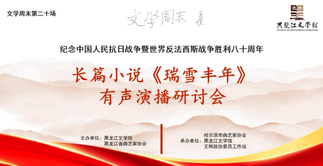8月31日上午,由黑龙江省文学院、黑龙江省曲艺家协会主办,哈尔滨市曲艺家协会、黑龙江文学馆与王刚政协委员工作站承办的长篇小说《瑞雪丰年》有声演播研讨会在黑龙江文学馆成功举行,这是黑龙江文学馆“文学周末”第二十场活动。来自全省文学界、文艺评论界、曲艺界的十余位专家、学者齐聚一堂,围绕文学作品向有声形态转化的路径、价值与未来前景及文艺家协会如何聚焦“做人的工作”提高服务质效等展开深入研讨,探索文学与曲艺跨界融合新路径,持续推动优质文艺资源直达基层。