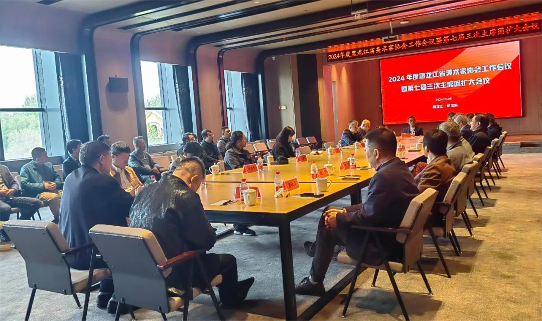 5月6日,2024年度黑龙江省美术家协会工作会议暨第七届三次主席团扩大会议以线上线下相结合的形式在禹舜美术馆召开。省文联副主席、党组成员王广,省文联副主席、省美协主席赵云龙出席会议。省美协主席团成员、理事会理事以及艺委会主任、秘书长等成员约260人参会,会议由省美协驻会副主席兼秘书长石正军主持。