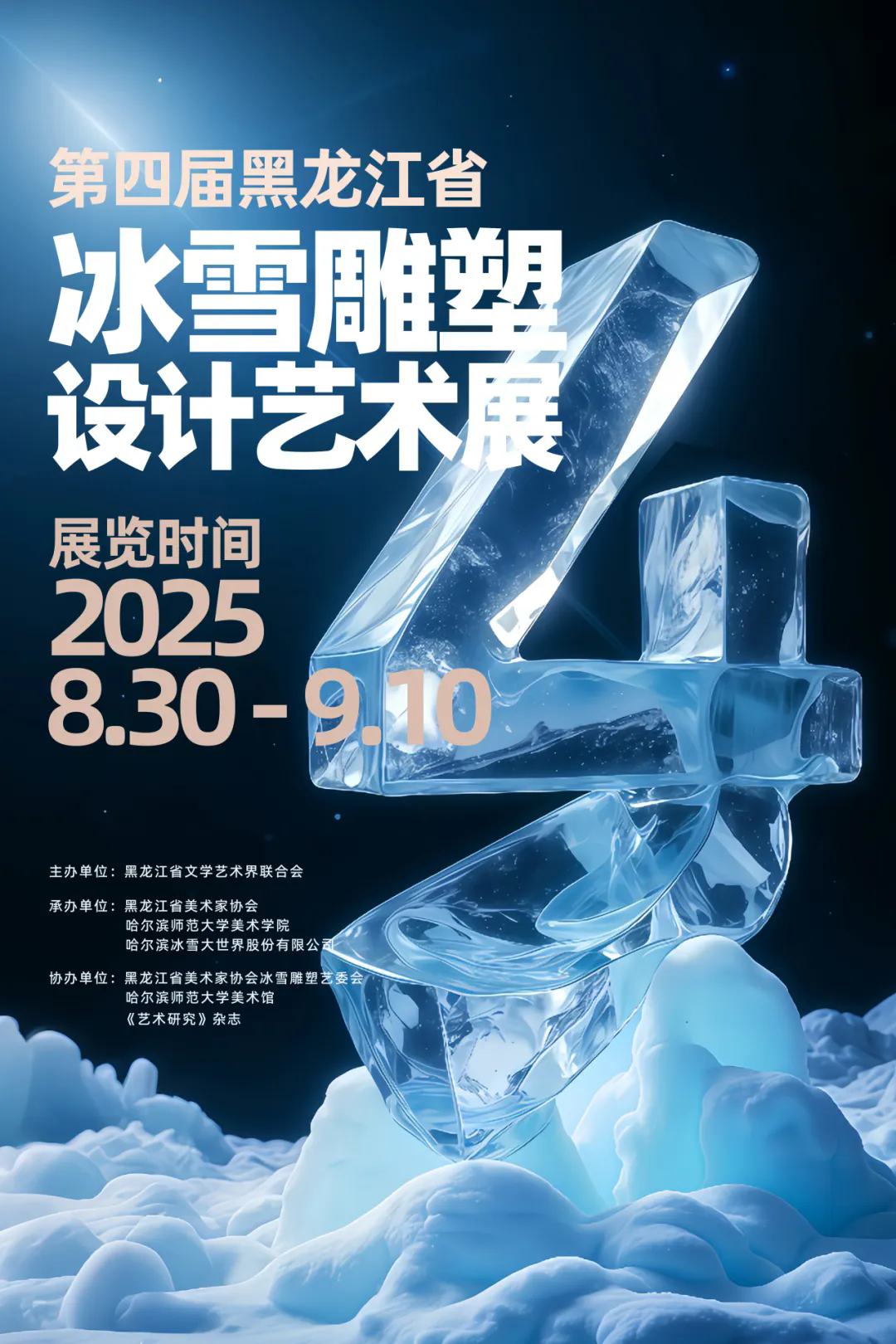 为深入学习贯彻习近平新时代中国特色社会主义思想,进一步贯彻落实“冰天雪地也是金山银山”的发展理念,深入挖掘黑龙江冰雪文化资源和内涵,提升哈尔滨冰雪文化之都的国际知名度,丰富冰雪雕塑艺术交流与展示平台,促进冰雪雕塑艺术的创新与发展,丰富人民群众的精神文化生活,特举办第四届黑龙江省冰雪雕塑设计艺术展。现将本次展览的征稿事宜通知如下: