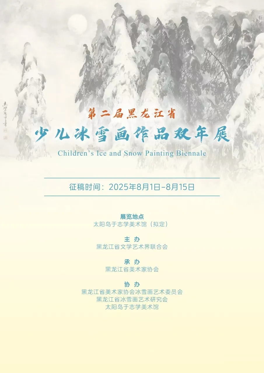 为深入学习贯彻习近平新时代中国特色社会主义思想和党的二十届三中全会精神,全面激发少儿美术创作活力,提升审美能力和艺术表现力,挖掘和培养冰雪画领域的新生力量,并集中展示当代黑龙江省少年儿童积极向上的精神风貌及其对冰雪文化的独特理解与表达,特举办第二届黑龙江省少儿冰雪画作品双年展。现将本次展览的征稿事宜通知如下: