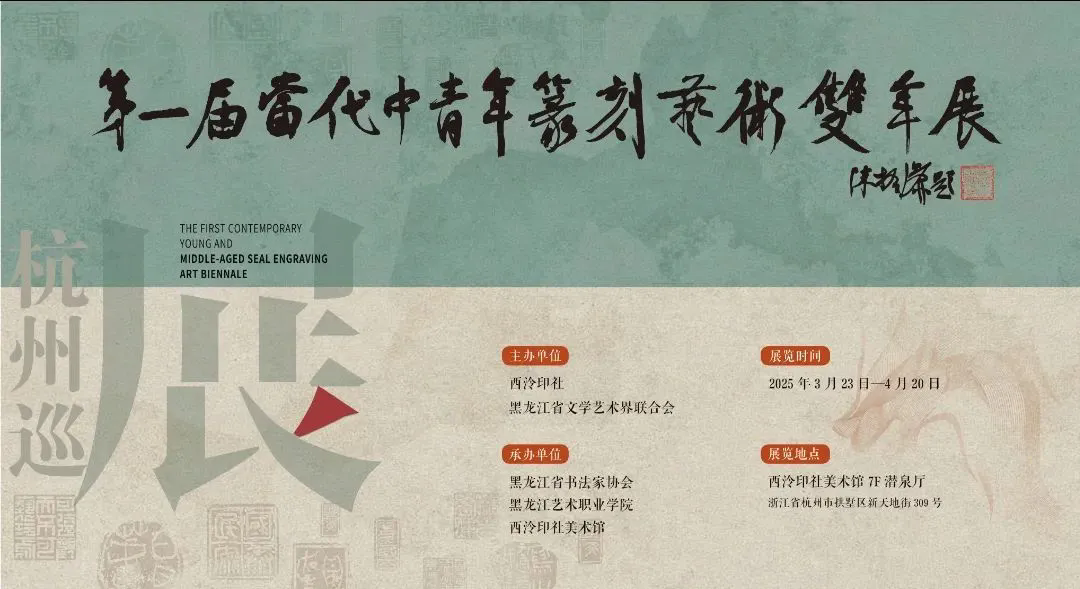为进一步推进西泠印社与黑龙江省两地文化艺术交流、巩固战略合作成果,前期在哈尔滨成功举办首届黑龙江省篆刻艺术周等多项活动的基础上,定于3月23日至4月20日在西泠印社美术馆举办第一届当代中青年篆刻艺术双年展杭州巡展。