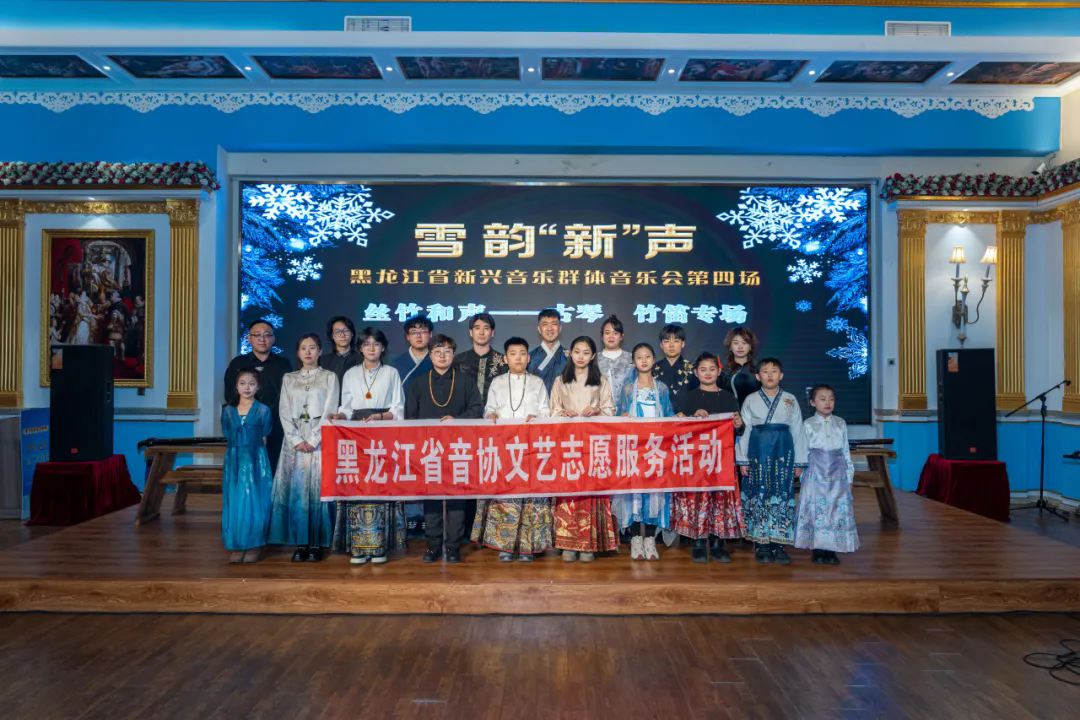 1 月 25 日,由黑龙江省音乐家协会、黑龙江省文艺志愿者协会、哈尔滨市文化产业协会联合主办的 “丝竹和声——古琴、竹笛专场音乐会”在哈尔滨市松雷中央大街何所有城市剧场举办。剧场内,丝竹声声、古韵袅袅,现场观众沉醉于传统音乐的独特魅力中。