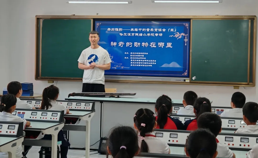 6月14日,由省文联主办的“文艺两新”艺术周系列活动之“册府雅韵——典籍中的音乐赏读会”(第五期)走进哈尔滨市道外区钱塘小学校。来自黑龙江省音乐家协会的会员以“神奇的动物在哪里”为主题,为现场80余名师生带来了一场生动有趣的典籍与民乐赏读会。