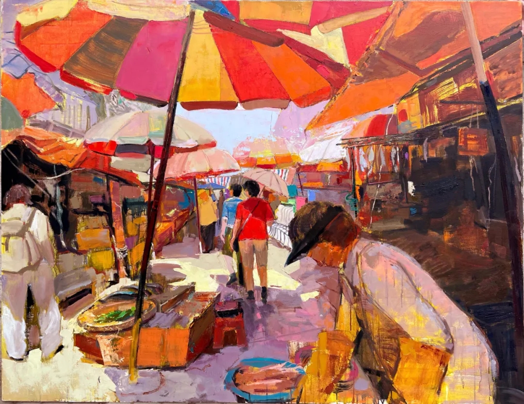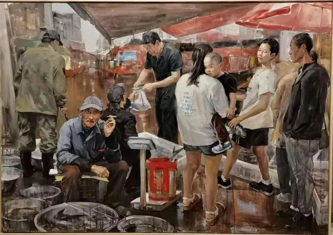 房继柱 《绥滨早市》 油画 金奖