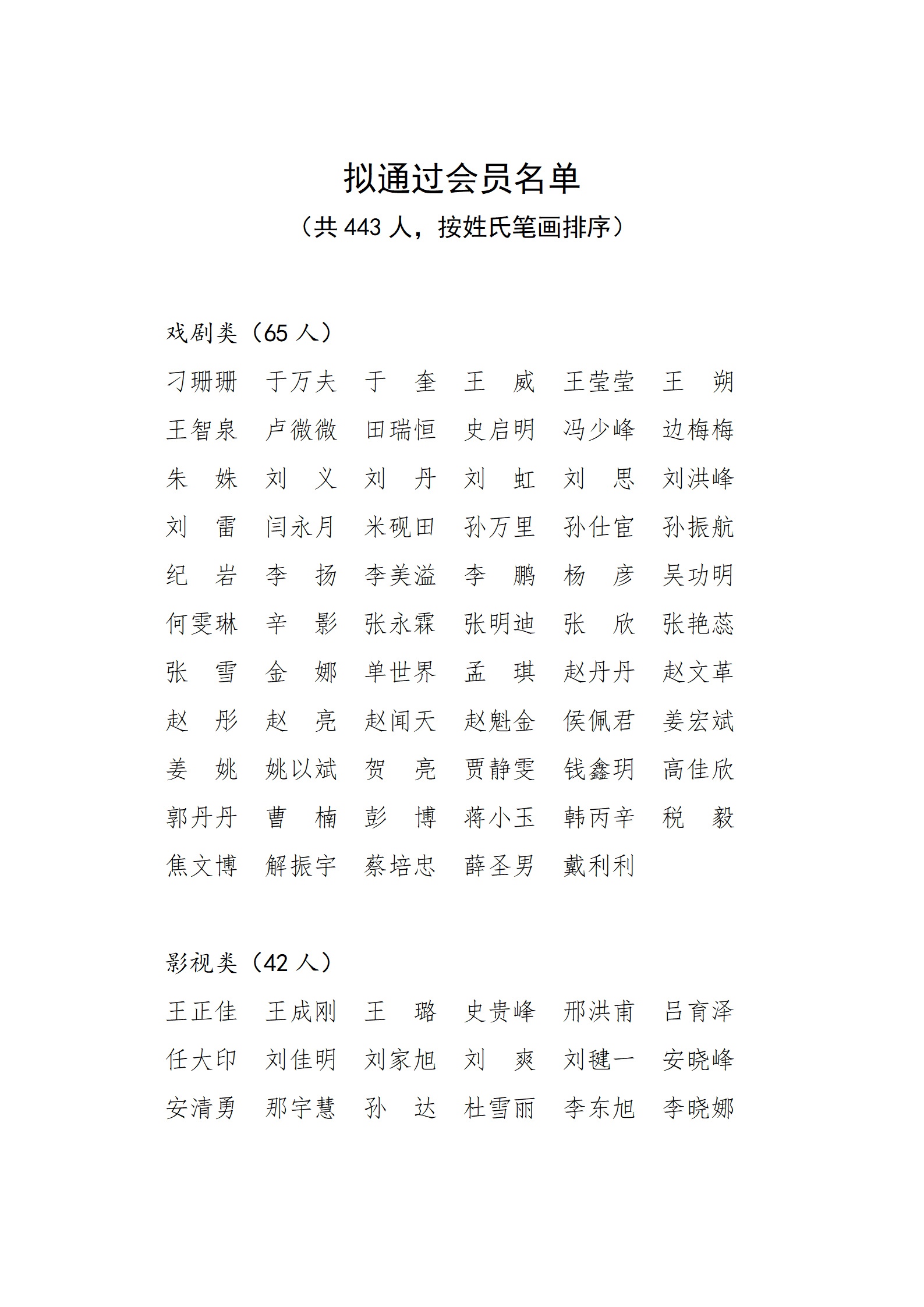 2023年度黑龙江省戏剧家协会、电影电视家协会、舞蹈家协会、摄影家协会、书法家协会、曲艺家协会、民间文艺家协会、文艺评论家协会入会申报审批工作已经结束。根据相关协会章程及个人会员入会细则有关规定,经相关会议研究、按流程严格审核,共确定443名申报者为2023年度拟入会人员,现进行公示,名单如下。