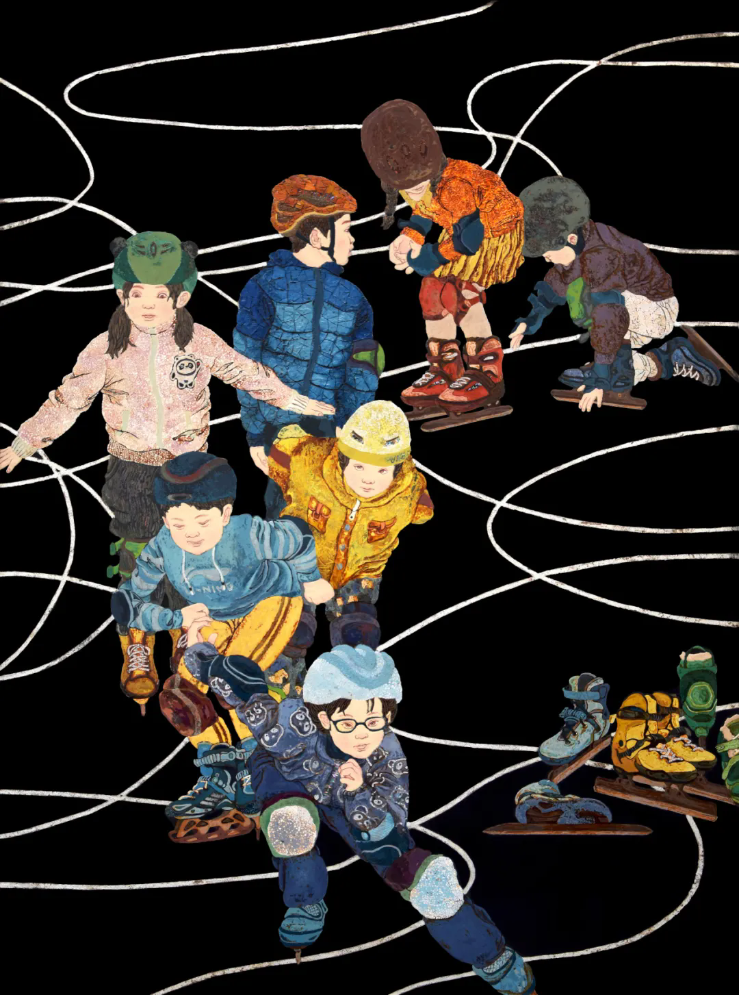 邵雨萱 《冰雪童梦》 漆画