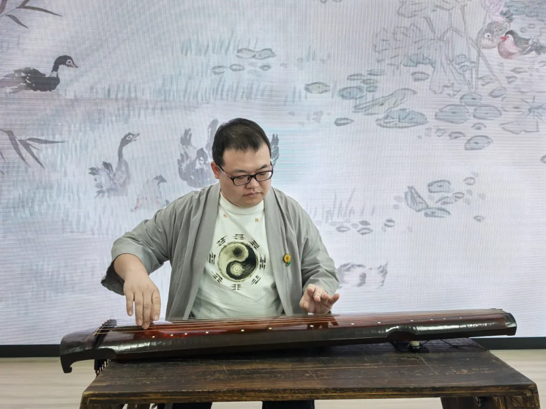 活动以《尚书》《论语》《史记》等典籍考据与艺术展演双线并行的模式,系统梳理了古琴文化的演进轨迹。从“舜弹五弦琴”的治国智慧,到伯牙子期“高山流水”的知音佳话,再到嵇康“目送归鸿”的文人风骨,结合历史语境剖析了古琴从祭祀礼器、治国重器到文人精神载体的三次功能嬗变,生动展现了古琴在中国传统文化中的重要地位。演出团队以音乐编年史为脉络,演绎了从春秋到清代的经典曲目。《高山流水》的激越、《凤求凰》的缠绵、《酒狂》的洒脱、《阳关三叠》的离愁、《潇湘水云》的忧思,以及《平沙落雁》《关山月》的苍茫壮美,每首琴曲都辅以典籍导读,实现了“文乐互证”的立体呈现,让观众在琴音中感受历史脉动。