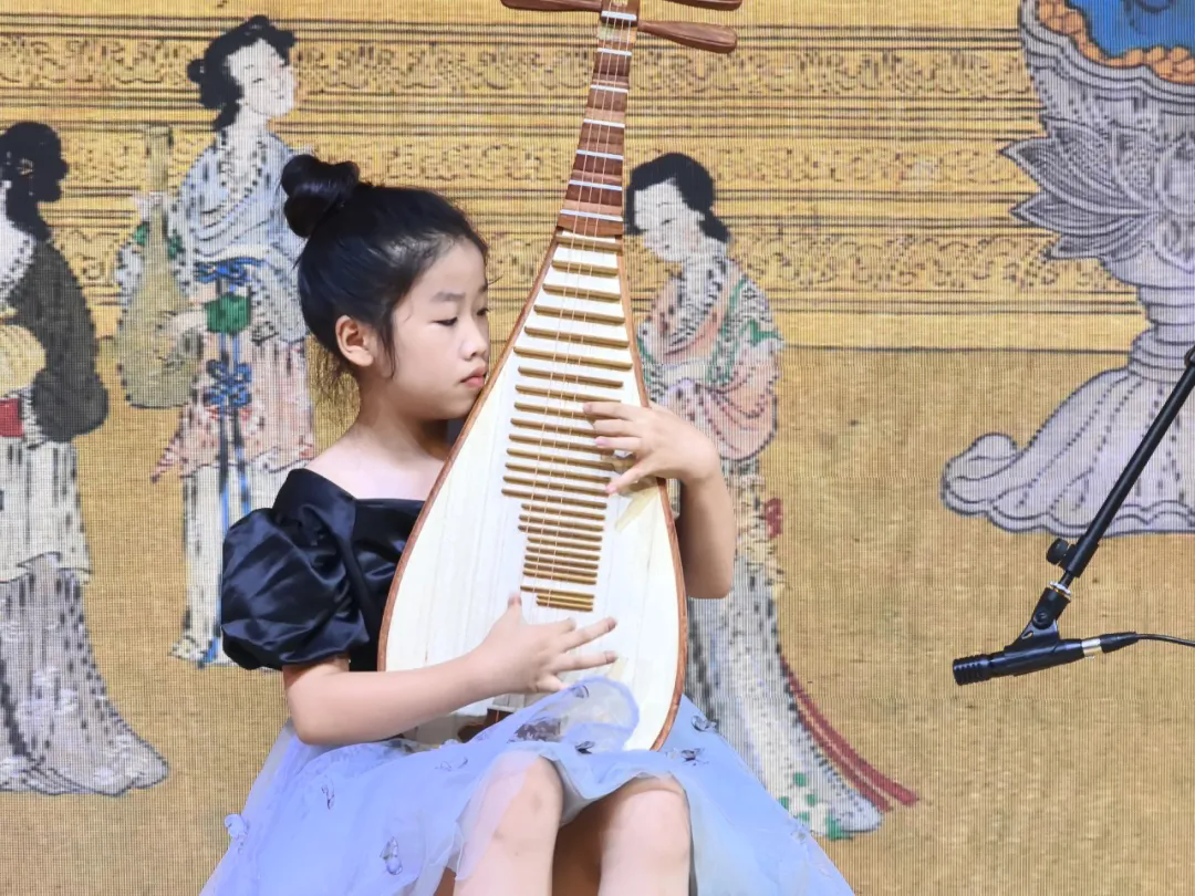 主持人以《释名》《敦煌曲谱》等典籍为引,梳理了琵琶从秦汉“弦鼗”、南北朝“曲项琵琶”到唐代“竖抱手弹”的形制演变,揭示其作为丝路文化载体的融合历程。开篇曲目《雁落平沙》以空灵雁鸣勾勒平沙意境;《霸王卸甲》运用扫弦、绞弦等技法,再现垓下悲壮;《金蛇狂舞》节奏明快、音色明亮,还原民间舞龙欢腾景象;《新翻羽调绿腰》汲取唐大曲灵感,通过吟揉、推拉等技法,传递“翩如兰苕翠,婉如游龙举”的乐舞神韵;《送我一枝玫瑰花》《彝族舞曲》等曲目,凭借多声部配合与特色技法,展现了浓郁的地域风情;《飞花点翠》运用左手“吟、揉、绰、注”等技法描绘春花飘落的诗意;《阳春白雪》则以清新旋律表现冬去春来;《虚籁》以细腻指法充分展现了琵琶的表现力;在《欢乐的日子》的欢快旋律中,音乐会圆满落幕。