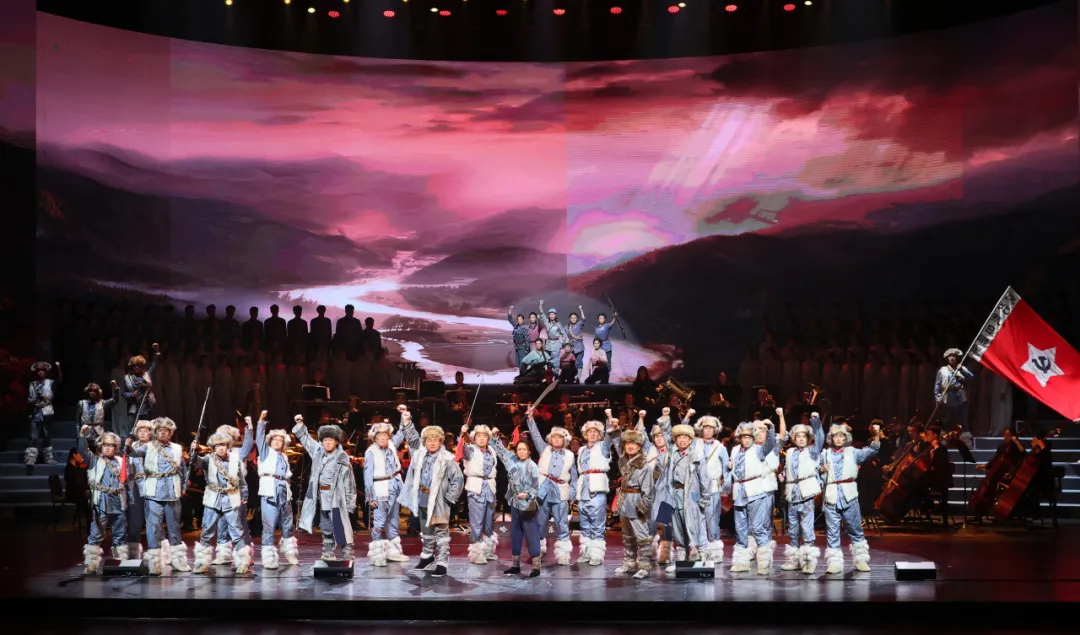 最后,全场观众起立与全体演员倾情合唱《歌唱祖国》,礼赞山河、礼赞英雄。“五星红旗迎风飘扬,胜利歌声多么嘹亮……”歌声激昂、情感汹涌,年轻学子目光炯炯,老一辈观众频频颔首。在东北抗联精神的感召下,龙江人民正以崭新的姿态,为振兴龙江、实现民族伟大复兴书写壮丽新篇!