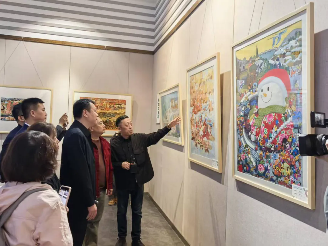 为深入学习贯彻习近平文化思想,全面贯彻新时代党的民族理论和民族政策,以文艺作品扩大各民族文化交流交往交融,按照省文联文化润疆的工作安排,本次展览还邀请了新疆阿勒泰地区农民画群体创作的20件作品。这些作品大多取自本地的自然景观、民俗风情、生产生活场景,如大漠绿洲、民族歌舞、巴扎集市、狩猎放牧等,也有民间寓言故事以及时代新风等内容,充满浓郁的乡土气息。