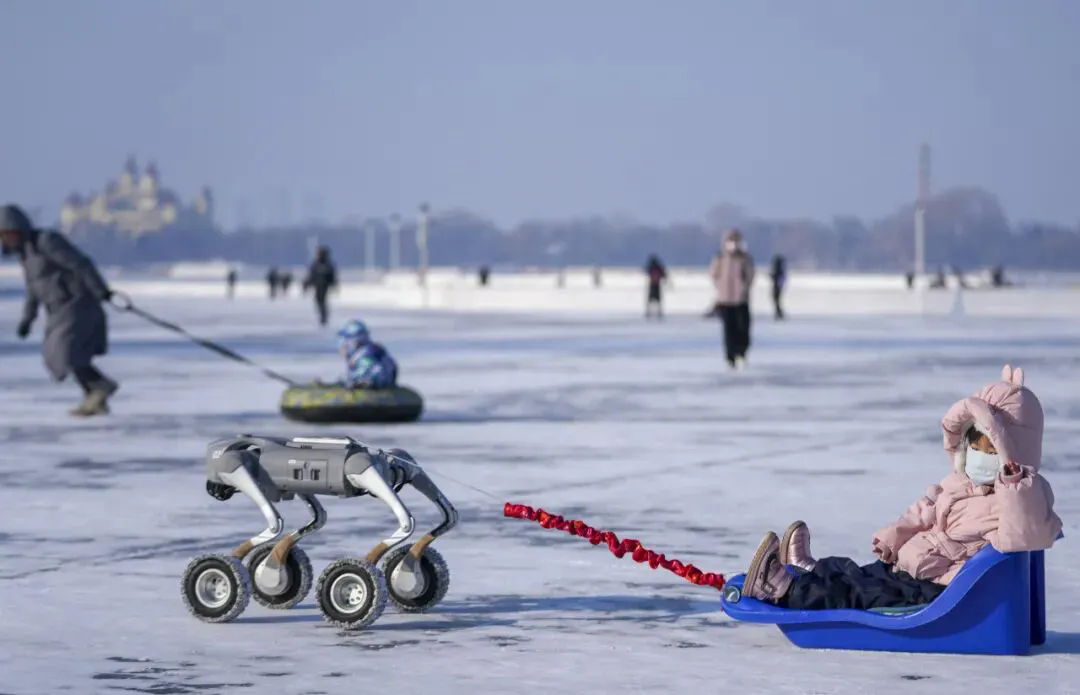 王建威《冰雪旅游新场景:机器狗拉爬犁》